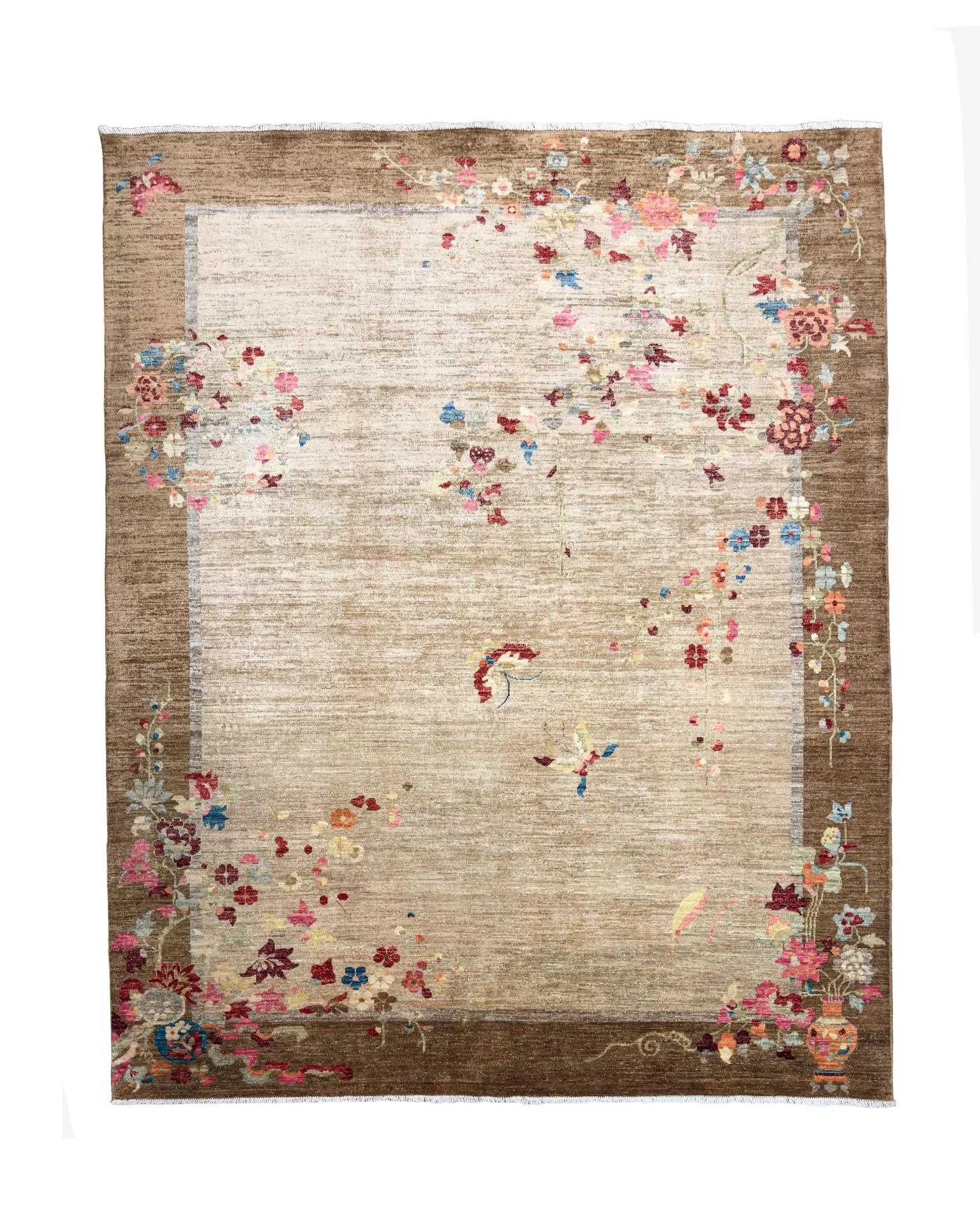 Questo tappeto riprende il fascino dei disegni Pekino antichi, reinterpretandoli in una versione moderna e più versatile. I motivi floreali e ornamentali, tipici dell’arte tessile cinese, sono proposti con un tratto più morbido e attuale, mantenendo però tutta la raffinatezza della tradizione orientale.
