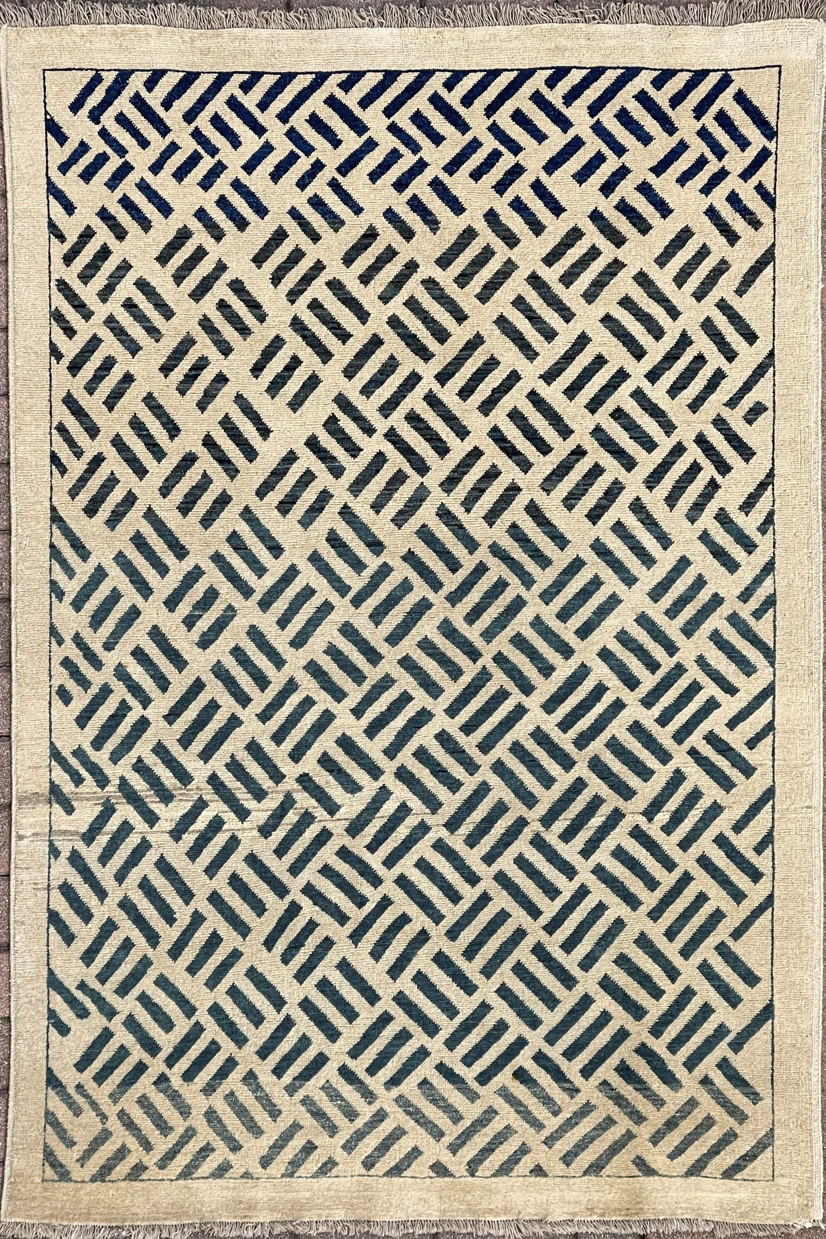 Scopri l’eleganza senza tempo del tappeto DM originale degli anni ’80, un capolavoro tessile firmato dal celebre Maestro Dario Mollaian, noto per la sua visione artistica che fonde tradizione persiana e modernità geometrica.